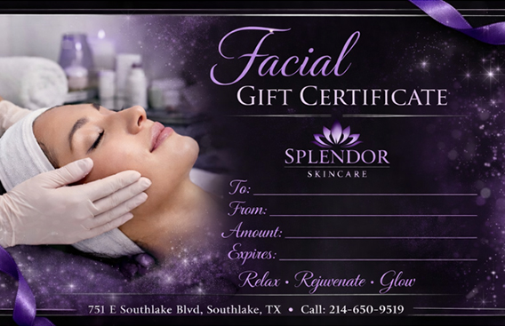 Our gift certificates are perfect for birthdays, special occasions, holidays, or just because. They can be used toward facial treatments and aesthetic services.
